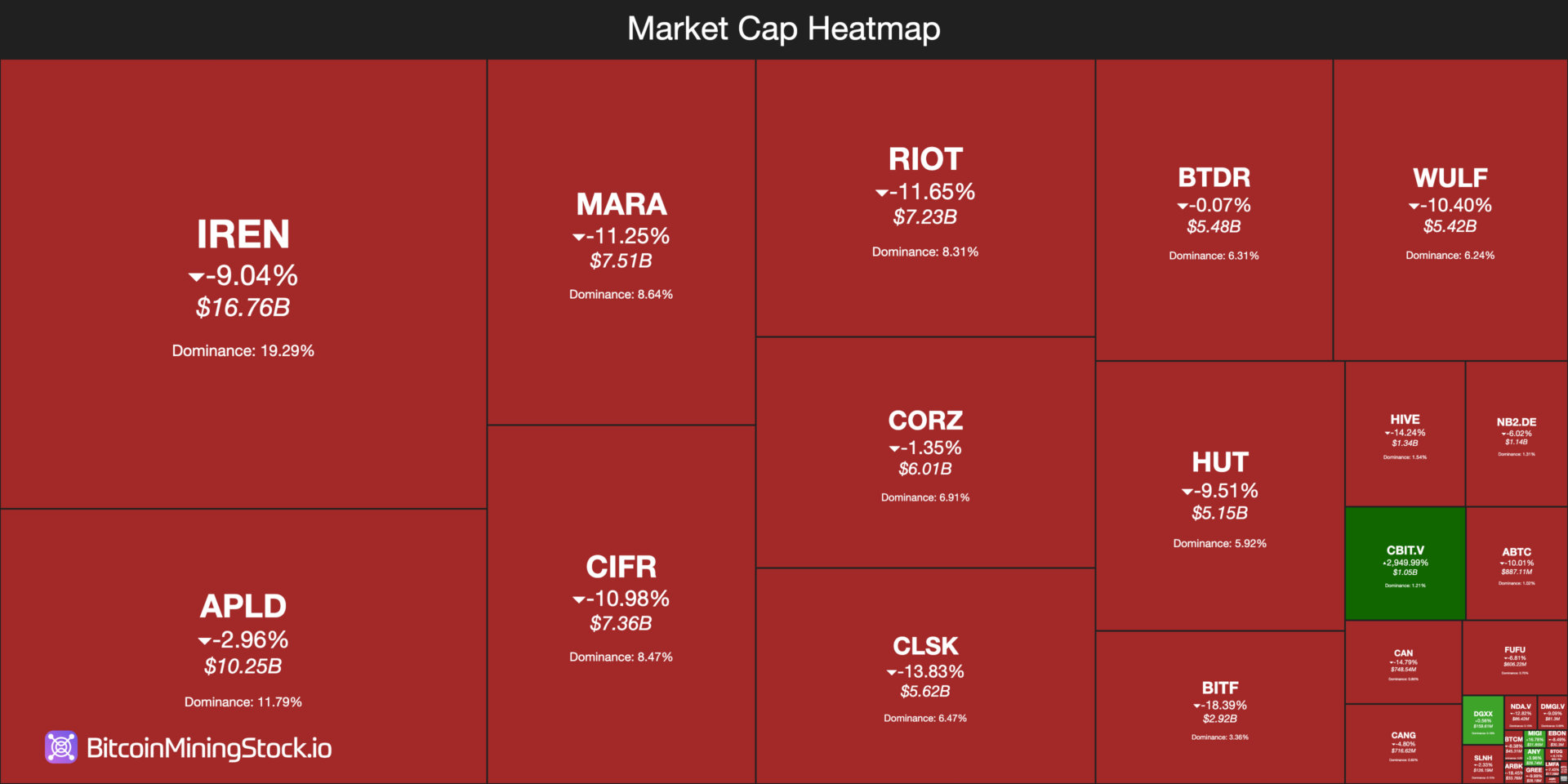 Market capitalization warmth map. Supply: BitcoinMiningStock.