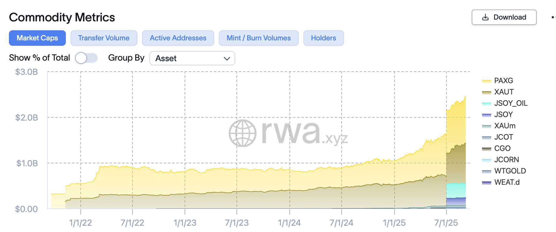 The tokenized commodity market is presently valued at $2.5 billion, accounting for round 9% of the $27.8 billion RWA tokenization sector. It has expanded by 5.6% over the previous 30 days.