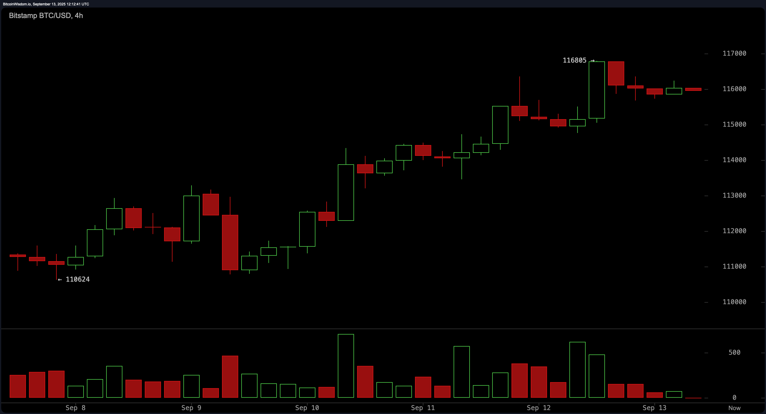 The 4-hour Bitcoin chart affords a powerful bullish continuation sample that peaked at $110,624 from the breakout at $116,805. The rally stays intact, however current candles present small our bodies and present a pause with momentum. Consumers appear to be taking a break, with help shaped between $114,500 and $115,000. A confirmed breakout of over $117,000 may speed up income in the direction of over $118,000 if accompanied by quantity with development. A cautious bull might think about an entry on retesting help.