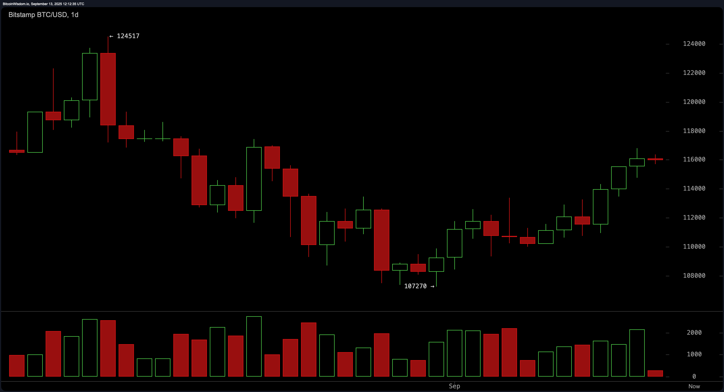 Bitcoin traded at $115,975 on September 13, 2025, with a market capitalization of $2.31 trillion and a 24-hour buying and selling quantity of $43.07 billion. The mid-day value of cryptocurrency fluctuated between $114,838 and $116,705 because it continued to consolidate current income.