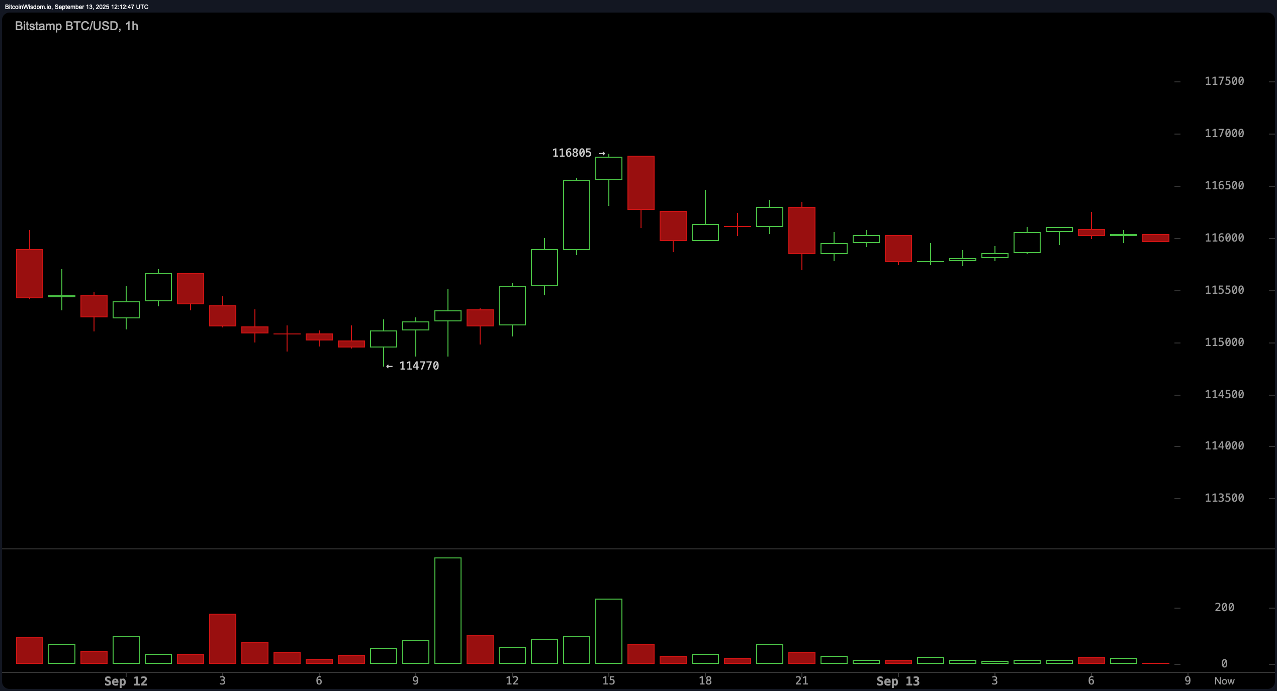 On the one-hour chart, Bitcoin is consolidated beneath $116,805 in peak, forming what seems to be a bullish flag or range-bound setup. Momentum cools, however usually precedes steady motion somewhat than reversal. Brief-term help is near $114,770 and so long as the worth is above $115,500, patrons are nonetheless in management. Scalpers might discover alternatives with breakouts above $116,800 or bounces close to the $115,000 degree, however with the potential for a short-term pullback, the outage ought to shut at beneath $114,770.